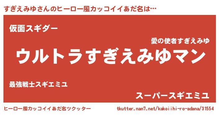 | 男性向けラノベタイトル風あだ名 | 『すぎえみゆ~年齢イコール彼女いない歴の魔法使い~』 |