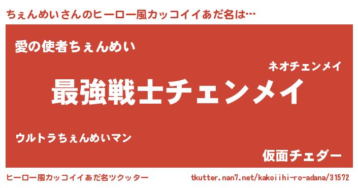 | 男性向けラノベタイトル風あだ名 | 『Re:ちぇんめいから始める異世界生活』 |