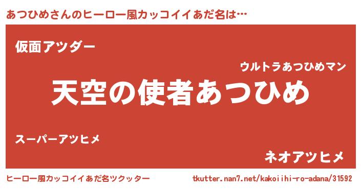 | ヘコむあだ名 | 『あつひめ(笑)』『酢こんぶ』 |