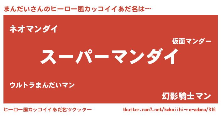 | 胡散臭い通販商品みたいなあだ名 | 『億万長者になれるブレスレット…その名も「まんだい」』 |