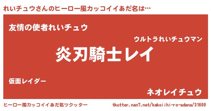 | 男性向けラノベタイトル風あだ名 | 『れいチュウの嫁は女の子じゃないと思った?』 |