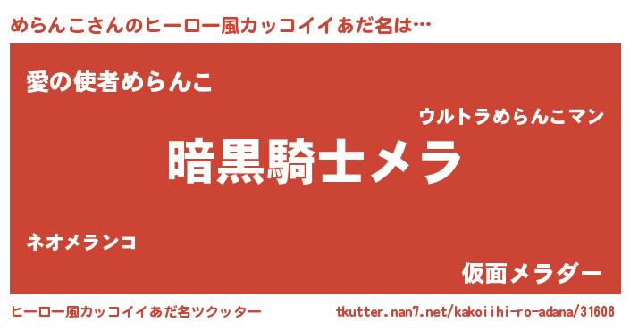 | 男性向けラノベタイトル風あだ名 | 『ダンジョンにめらんこを求めるのは間違っているだろうか』 |