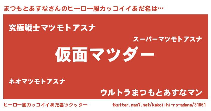 | 男性向けラノベタイトル風あだ名 | 『この素晴らしい世界にまつもとあすなを!』 |