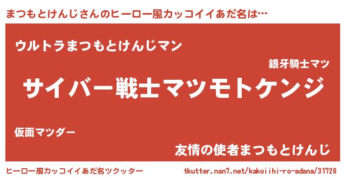 | 男性向けラノベタイトル風あだ名 | 『冴えないまつもとけんじの育てかた』 |