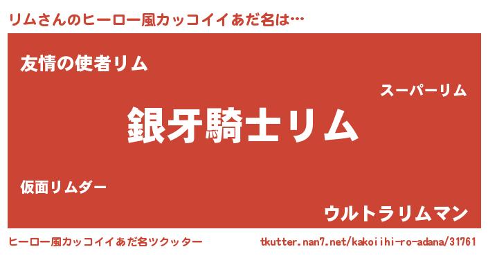 | 女子向けラノベタイトル風あだ名 | 『リムの卵を拾いまして』『リム恋絵巻』 |