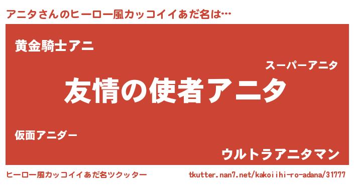 | 男性向けラノベタイトル風あだ名 | 『おまえをオタクにしてやるから、俺をアニタにしてくれ! 』 |