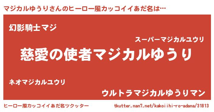 | 男性向けラノベタイトル風あだ名 | 『転生したらマジカルゆうりだった件』 |