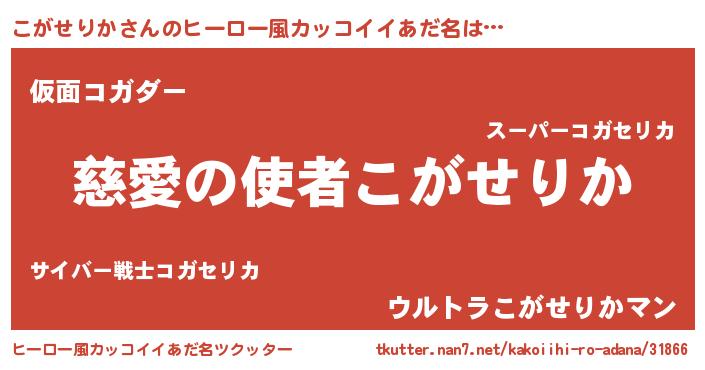 | 男性向けラノベタイトル風あだ名 | 『転生したらこがせりかだった件』 |