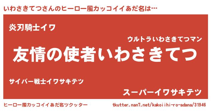 | 男性向けラノベタイトル風あだ名 | 『おまえをオタクにしてやるから、俺をいわさきてつにしてくれ! 』 |