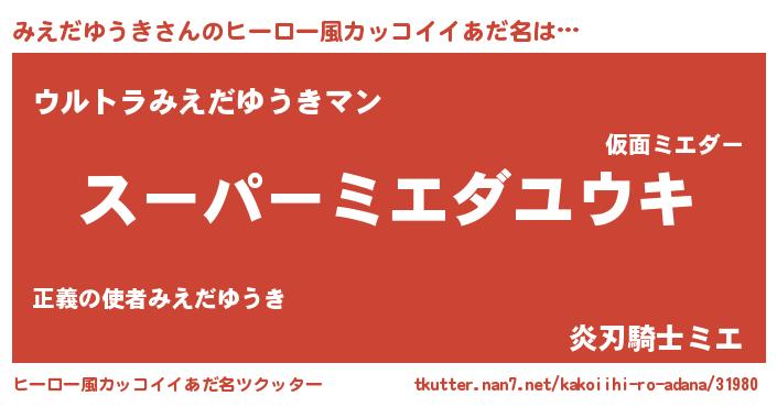 | 胡散臭い通販商品みたいなあだ名 | 『億万長者になれるブレスレット…その名も「みえだゆうき」』 |