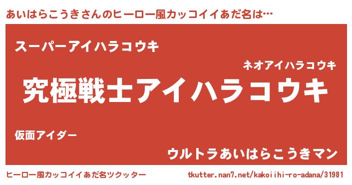 | 意味不明あだ名 | 『自称あいはらこうき』 |