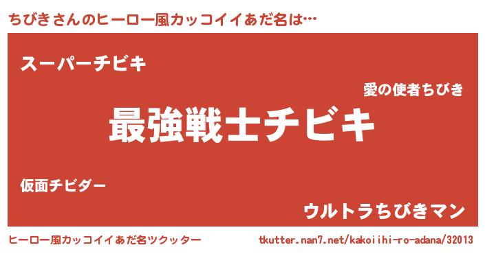 | 男性向けラノベタイトル風あだ名 | 『ちびき~年齢イコール彼女いない歴の魔法使い~』 |