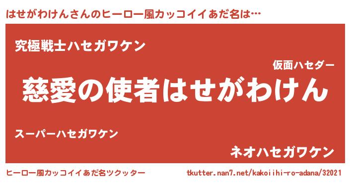 | 女子向けラノベタイトル風あだ名 | 『はせがわけん恋絵巻』 |
