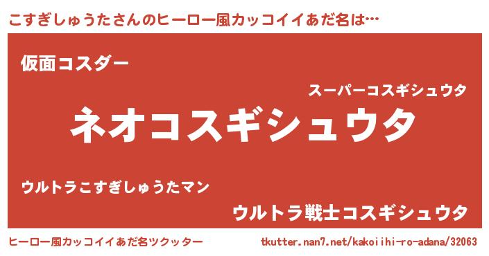 | 男性向けラノベタイトル風あだ名 | 『誰もが恐れるあのこすぎしゅうたが、ぼくの専属メイドになるようです。』 |