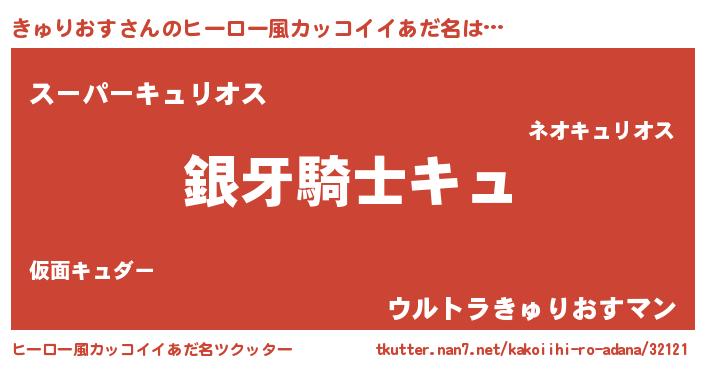| 女子向けラノベタイトル風あだ名 | 『きゅりおすの卵を拾いまして』 |
