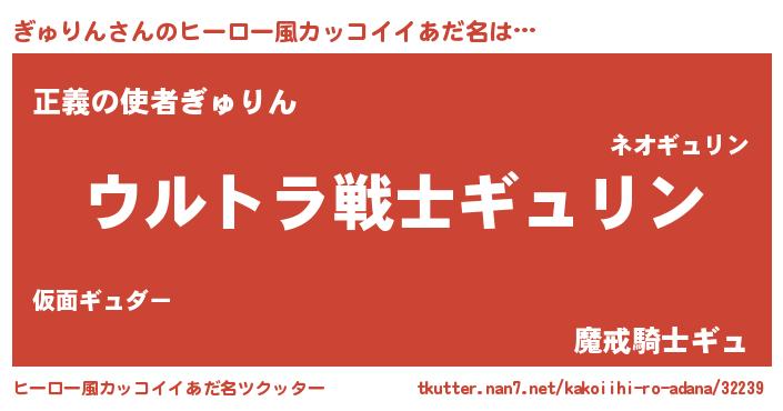 | 男性向けラノベタイトル風あだ名 | 『魔法科高校のぎゅりん』 |