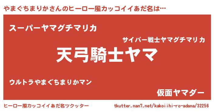 | 男性向けラノベタイトル風あだ名 | 『やまぐちまりかの嫁は女の子じゃないと思った?』 |