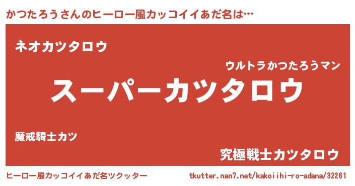 | 男性向けラノベタイトル風あだ名 | 『カツタロウアートオンライン』 |
