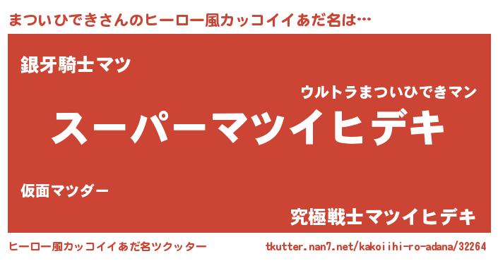 | 男性向けラノベタイトル風あだ名 | 『マツイヒデキアートオンライン』 |