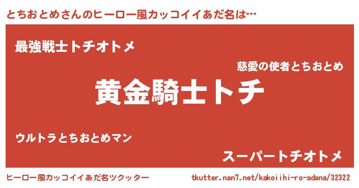 | 男性向けラノベタイトル風あだ名 | 『緋弾のトチオトメ』 |