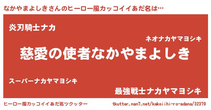 | 男性向けラノベタイトル風あだ名 | 『なかやまよしき~年齢イコール彼女いない歴の魔法使い~』 |