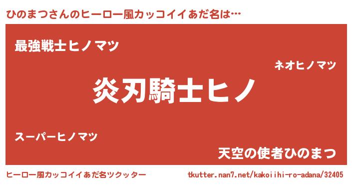 | 女子向けラノベタイトル風あだ名 | 『ひのまつ様がみてる』『闇のひのまつ』 |