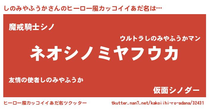 | 胡散臭い通販商品みたいなあだ名 | 『来世でも幸せになれる水素水…その名も「しのみやふうか」』 |