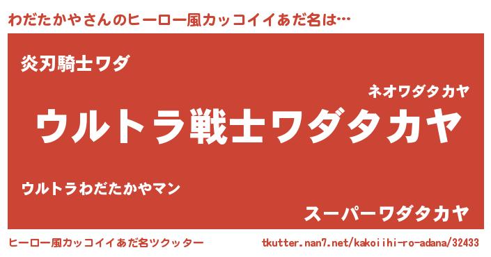 | 男性向けラノベタイトル風あだ名 | 『魔法科高校のわだたかや』 |