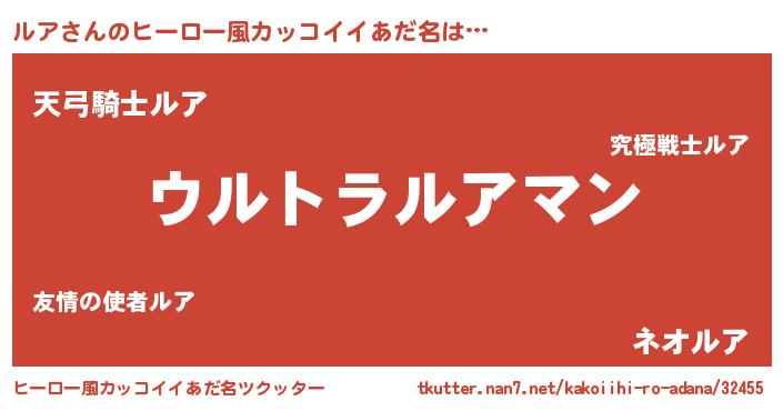 | 女子向けラノベタイトル風あだ名 | 『ルアの雑貨屋さん』『ルア様がみてる』 |
