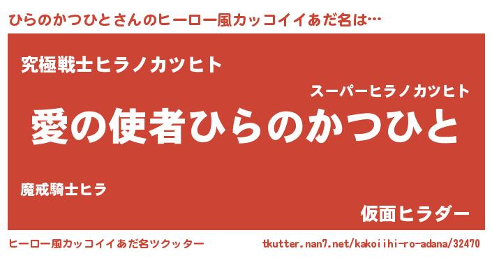 | 女子向けラノベタイトル風あだ名 | 『ひらのかつひと恋絵巻』 |