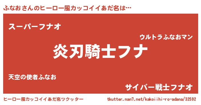 | 男性向けラノベタイトル風あだ名 | 『ふなおの嫁は女の子じゃないと思った?』 |