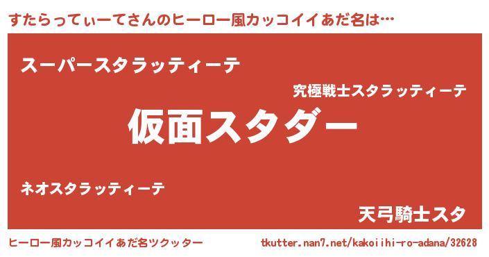 | 女子向けラノベタイトル風あだ名 | 『すたらってぃーてが死なない童話 林檎のすたらってぃーての診療簿』 |