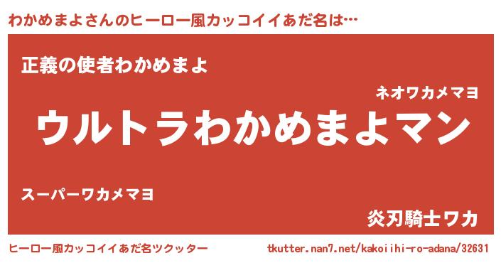 | 男性向けラノベタイトル風あだ名 | 『やはりわかめまよの青春ラブコメはまちがっている 』 |