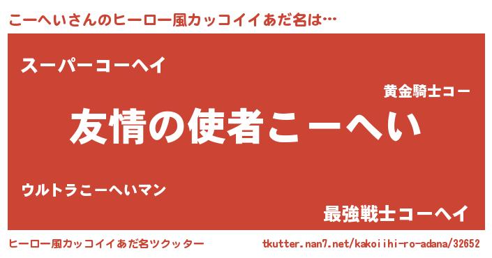 | 男性向けラノベタイトル風あだ名 | 『おまえをオタクにしてやるから、俺をこーへいにしてくれ! 』 |