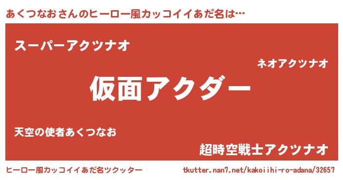 | 男性向けラノベタイトル風あだ名 | 『魔弾の王とあくつなお』 |