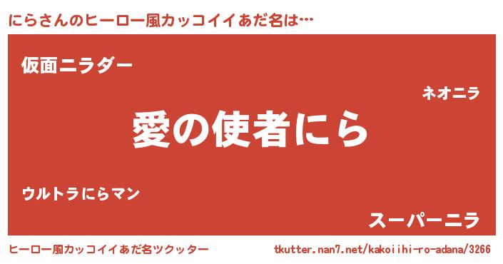 | 女子向けラノベタイトル風あだ名 | 『にら恋絵巻』『男装にらの憂鬱な任務』 |