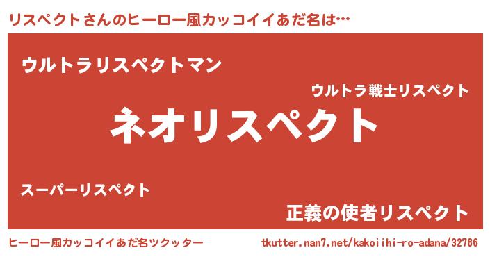 | 意味不明あだ名 | 『永久保存リスペクト』『自称リスペクト』 |