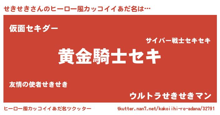 | 意味不明あだ名 | 『とにかく怪しいせきせき』 |