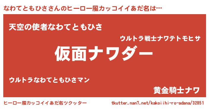 | 男性向けラノベタイトル風あだ名 | 『魔弾の王となわてともひさ』 |