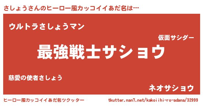 | 男性向けラノベタイトル風あだ名 | 『Re:さしょうから始める異世界生活』 |