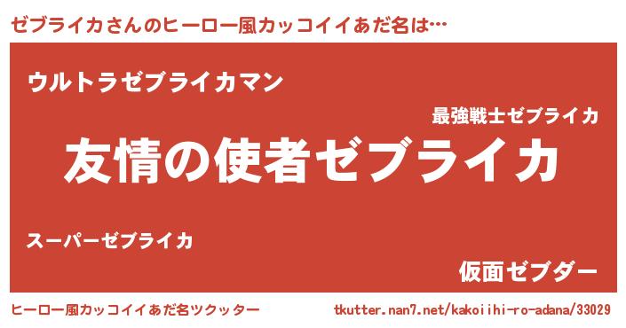 | 女子向けラノベタイトル風あだ名 | 『ゼブライカ恋絵巻』 |