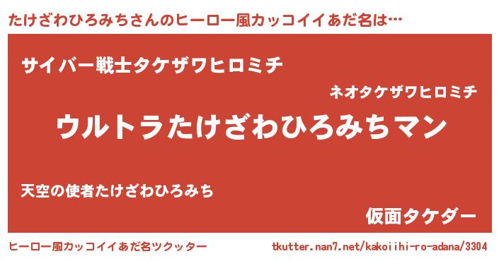 | 男性向けラノベタイトル風あだ名 | 『冴えないたけざわひろみちの育てかた』 |