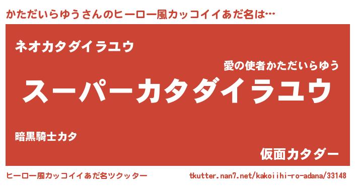 | 女子向けラノベタイトル風あだ名 | 『かただいらゆうの玉の輿計画!』 |