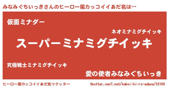 | 男性向けラノベタイトル風あだ名 | 『うちのみなみぐちいっきが世界を掌握している!』 |