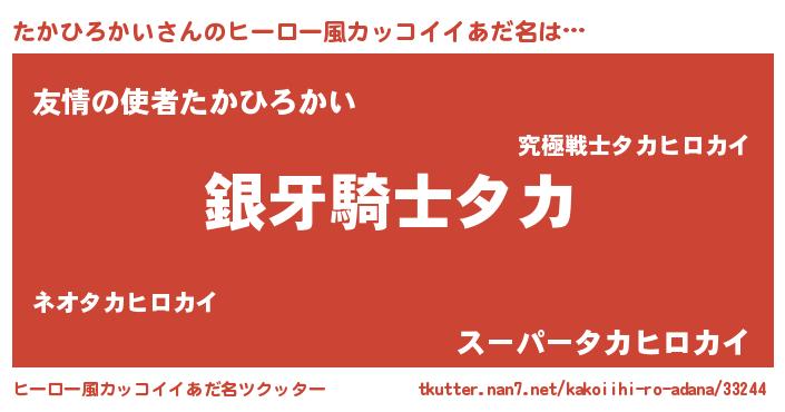 | 意味不明あだ名 | 『とにかく怪しいたかひろかい』 |