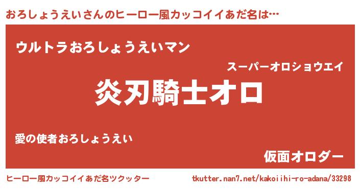 | 男性向けラノベタイトル風あだ名 | 『おろしょうえいに滅ぼされるだけの簡単なお仕事です』 |