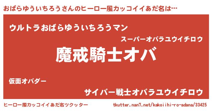 | 胡散臭い通販商品みたいなあだ名 | 『信頼と実績のサプリメント…その名も「おばらゆういちろう」』 |