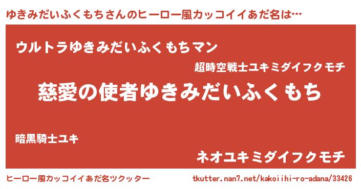 | 男性向けラノベタイトル風あだ名 | 『ノーゲーム・ノーユキミダイフクモチ』 |