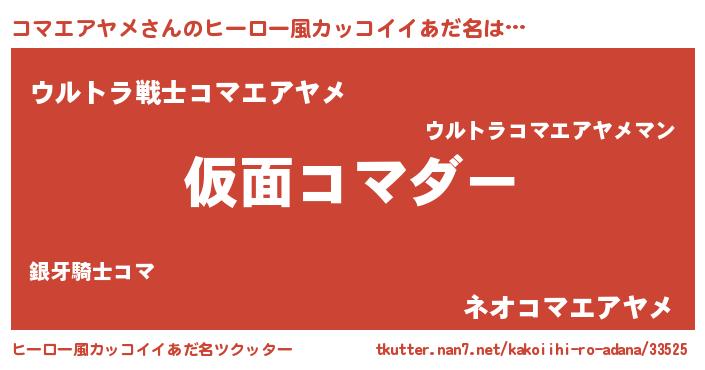 | ポケモン風あだ名 | 『コーマイ』『コマゴンZ』『ゼニコマ』 |