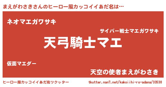 | 男性向けラノベタイトル風あだ名 | 『まえがわさきの嫁は女の子じゃないと思った?』 |